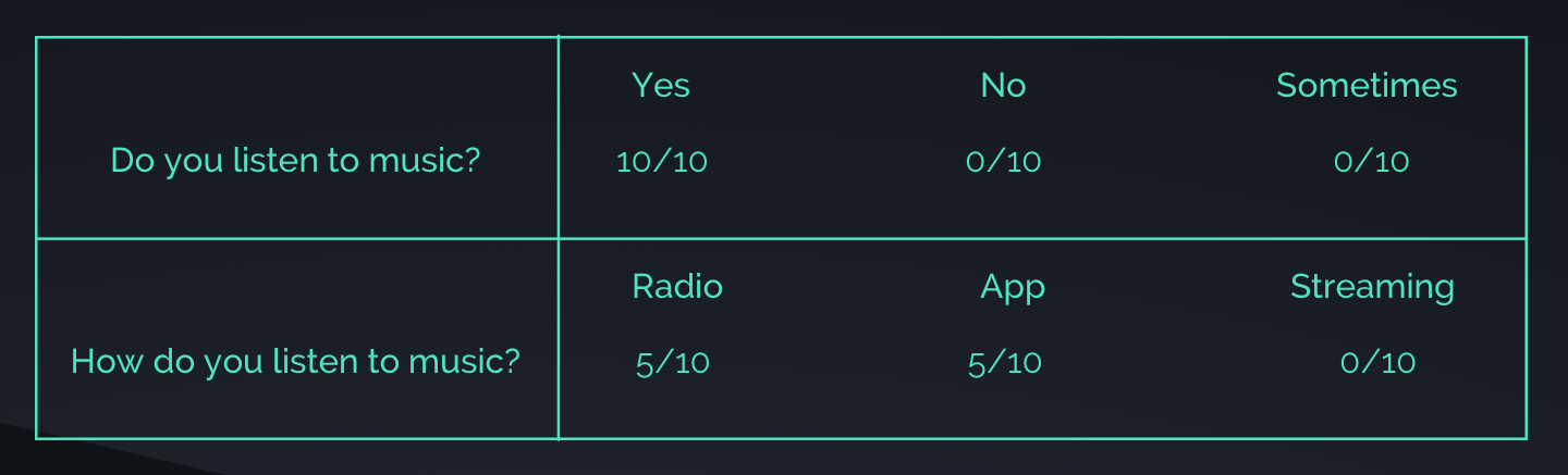 Since I was already creating this app for myself, I wanted to see if people experience listening to music the same way that I do. To my surprise, I found that most consumers have similar experiences to myself. I wanted to ask people face to face to gauge their expressions and collect honest feedback. While shopping in the electronics department at Target, I came across a few potential participants that had an interest in being included in my research. Those participants were asked the following questions.Since I was already creating this app for myself, I wanted to see if people experience listening to music the same way that I do. To my surprise, I found that most consumers have similar experiences to myself. I wanted to ask people face to face to gauge their expressions and collect honest feedback. While shopping in the electronics department at Target, I came across a few potential participants that had an interest in being included in my research. Those participants were asked the following questions.